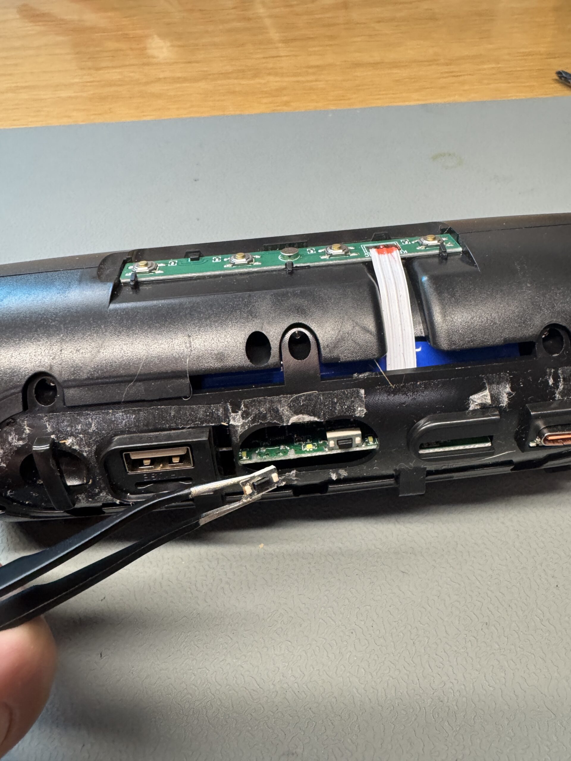 Bei einer JBL Flip 6 war der SMD-Power-Taster von der Platine abgebrochen. Ich ersetzte den beschädigten Schalter, reinigte die Lötpads und verlötete das neue Bauteil unter dem Mikroskop – die Box schaltet wieder sauber ein und funktioniert einwandfrei.